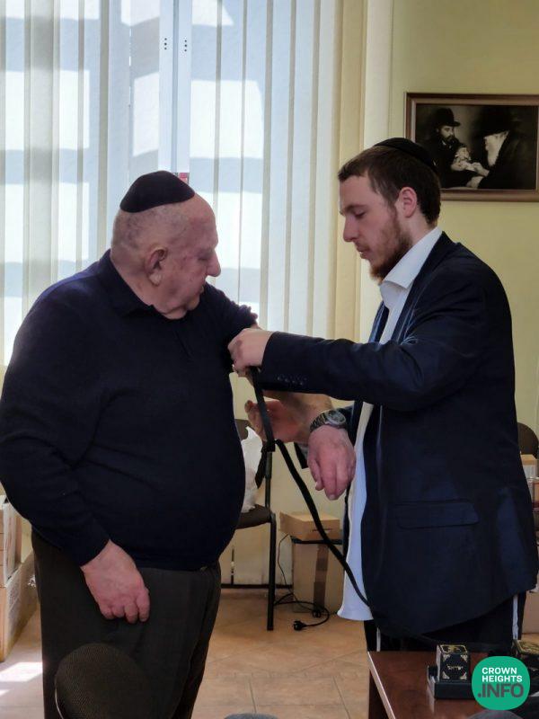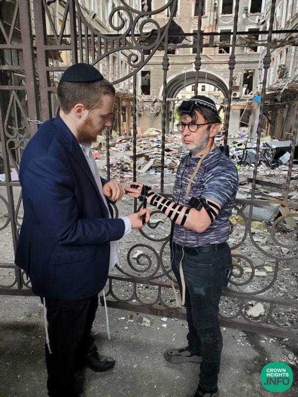 The line is long to give a hug, share the excitement, and put on tefillin. So much to say and so much to be grateful for. The people who have been sheltering in the basement come to say thank you for saving their lives. The packages of food are on their way to go out to hundreds of homes and Rabbi Moskovitz gets a chance to thank the drivers who have risked their lives to ensure that the food and medicines are delivered all over the city. To the cooks who have been living in the synagogue since February 24th. He sees off a bus taking people out of the city to Moldova and on to Israel. He wishes them well and ensures them that the community will help them wherever they go.