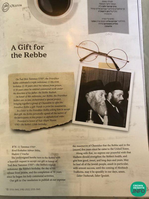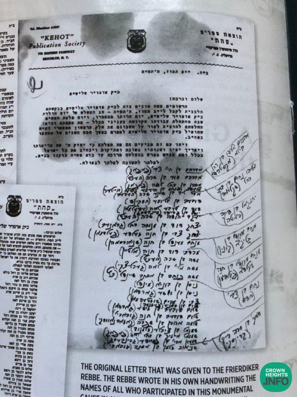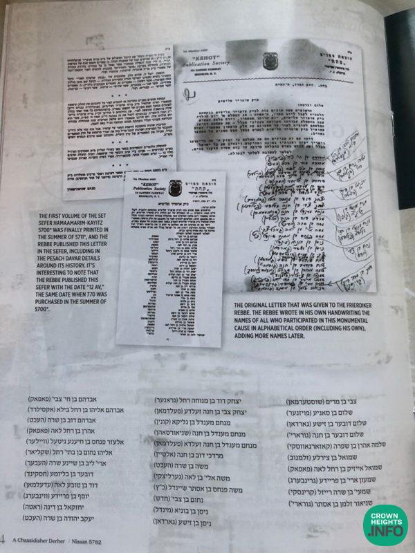 When the Rebbe organized a gift for the Friedike Rebbe to publish the ma’amorim that he said in America starting in 5700 (1940), Reb Chazkel was one of the financial contributors to this cause (at the young age of 20!) and was zocheh that the Rebbe wrote his name with the others to be given into the Friedike Rebbe. (See below for a facsimile of it.)