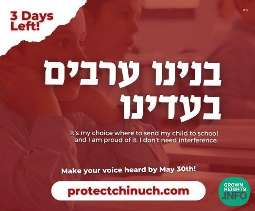 As we approach Shavuos, we stand together כאיש אחד בלב אחד to protect the Torah and our way of life. We will do what we can to preserve our freedom to choose an unadulterated Torah Chinuch for our children!