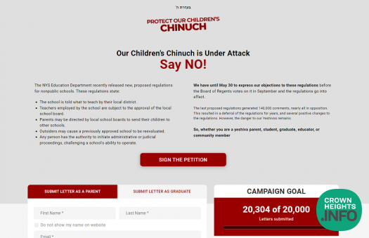 Fortunately, the United States Constitution supports Chabad today. We do not need to put our safety at risk to oppose those who would accept compromises on frum education. We simply need to take the five minutes to put our name to the letter below and inform the State of New York that the “Felder Amendment” does not represent Chabad! We must inform the State of New York that neither Mr. Felder nor any other ‘Askan’, has the authority or ability to authorize New York regulation limiting Chinuch Al Tahras Hakodesh.