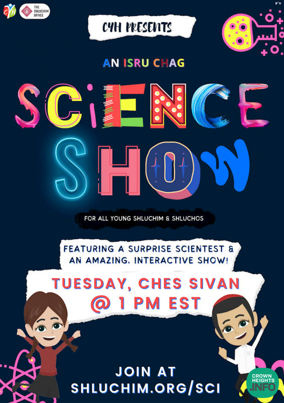 The Shluchim Office invites all young Shluchim and Shluchos to join a post-Shavuos program full of science fun, inspiration and entertainment, free of charge.