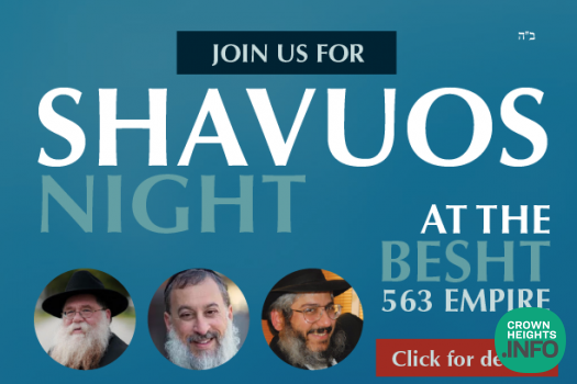 As each year on the first night of Shavuos, lectures on a variety of topics will be held at the BESHT Center in Crown Heights.