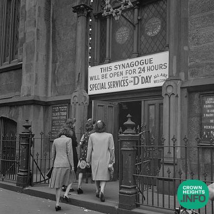 As thousands of Jewish soldiers put their lives on the line storming the beaches of Normandy on D-Day, June 6th, 1944, many thousands more flocked to Shuls across the United States to pray for their relatives and friends. This photo, taken on D-Day and make available through the Library of Congress, shows a Manhattan Shul holding all day prayers. The shul is now the home of the Chabad of Chelsea.
