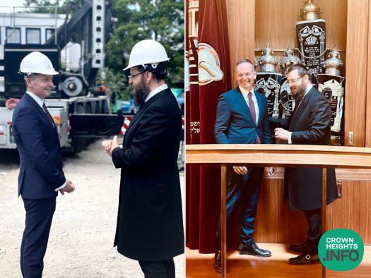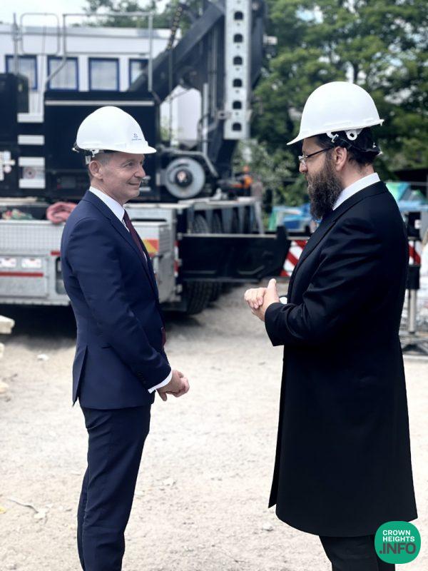 The German Federal Minister for Digital Affairs and Transport Volker Wissing visited Chabad Berlin and Jewish Campus. Rabbi Yehuda Teichtal took him to the construction site of the Jewish Campus, where the construction management explained the ongoing works and mentioned the end of construction for the coming winter.