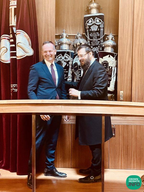 Afterwards, the federal minister visited the neighboring Chabad Synagogue and surprised everyone with his good knowledge of Hebrew.