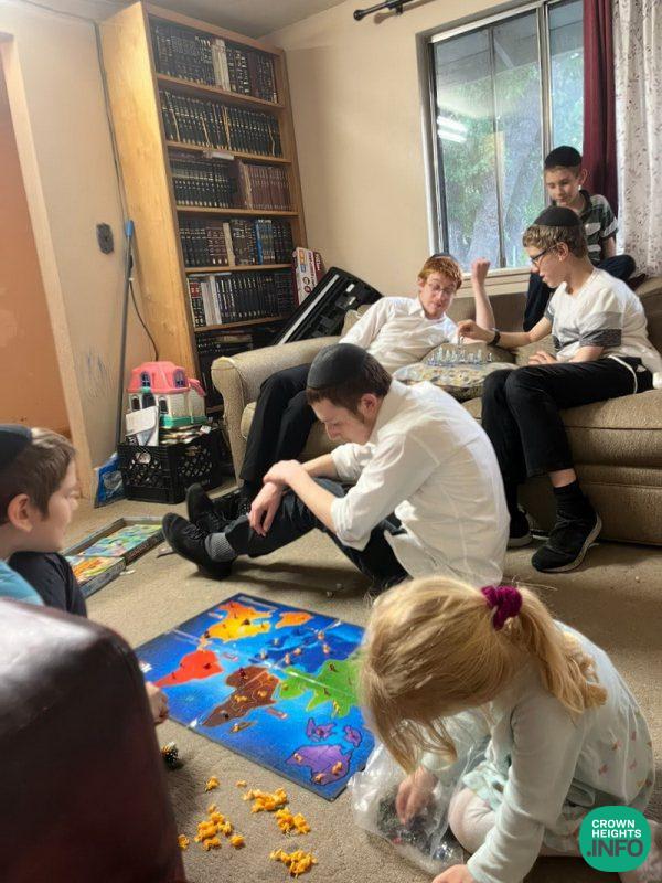 Such scenarios played out again and again as 170 Bochurim attempted to travel to join Shluchim in eighty unique locations to enhance their Shavuos experience. Spearheaded by Mrs. Chani Goldberg, the visits were organized by The Ufaratzta Circle, the small town-community outreach department at Merkos 302. The Bochurim helped ensure there would be a Minyan for Krias HaTorah to hear the Aseres Hadibros and lead all-night learning sessions with the Shluchim and their communities. For the Shluchim’s children, they brought treat packages, including an assortment of candies from which they could build a candy Har Sinai. The visits infuse the communities with high-energy Simchas Yom Tov and provide a powerful boost of Chizuk to the Shluchim and their families.