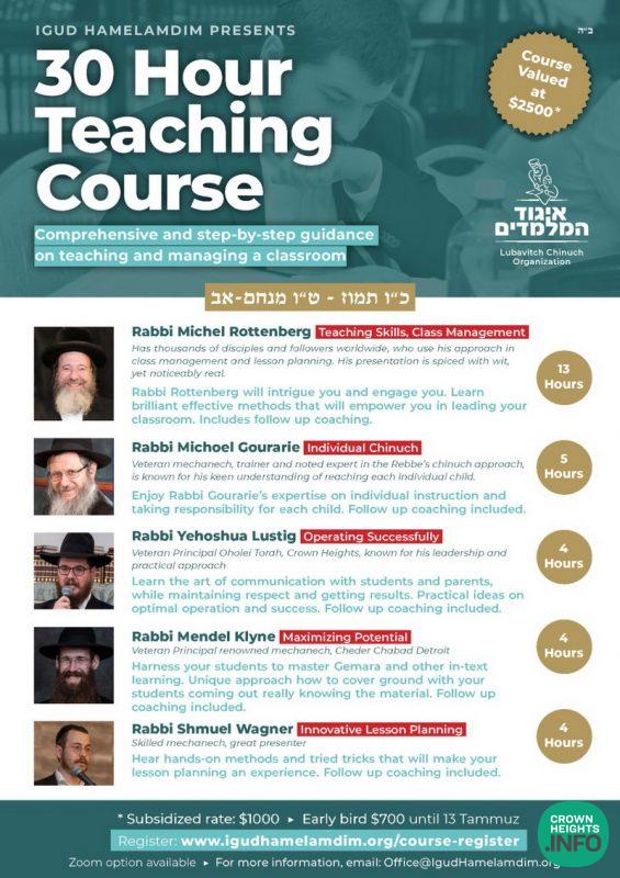 An exciting addition is being made to this year’s course with the inclusion Rabbi Shmuel Wagner, a skilled mechanech at ULY Ocean Parkway and well-known presenter, noted for his clear lucid deliverance, intuitive and practical classroom techniques. He will also expand on “Innovative Lesson Planning”.