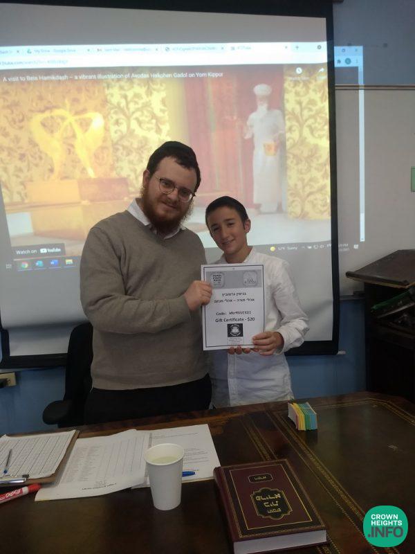 Every three weeks, each class participating in the program takes a written test on all of the material covered. Boys are given a Gemara to look inside of, and questions focus on deciphering the Gemara’s back-and-forth analysis of the Mishna. For each question answered correctly, the boys earned points towards prizes at the end of the year. Additionally, exciting virtual raffles took place every few weeks for valuable gift certificates to various Judaica stores. The raffles are also viewed as an opportune time for us to infuse our participating students with inspirational messages related to Bifnim, says Rabbi Bluming.