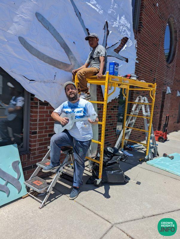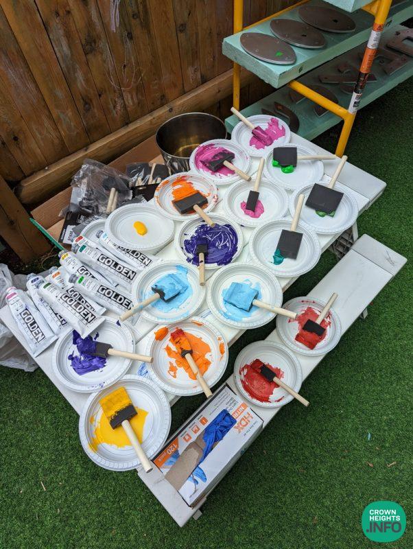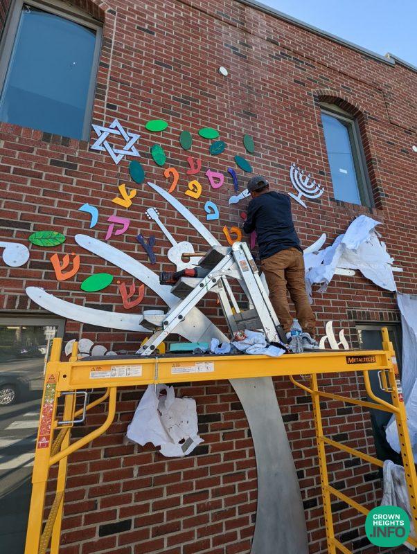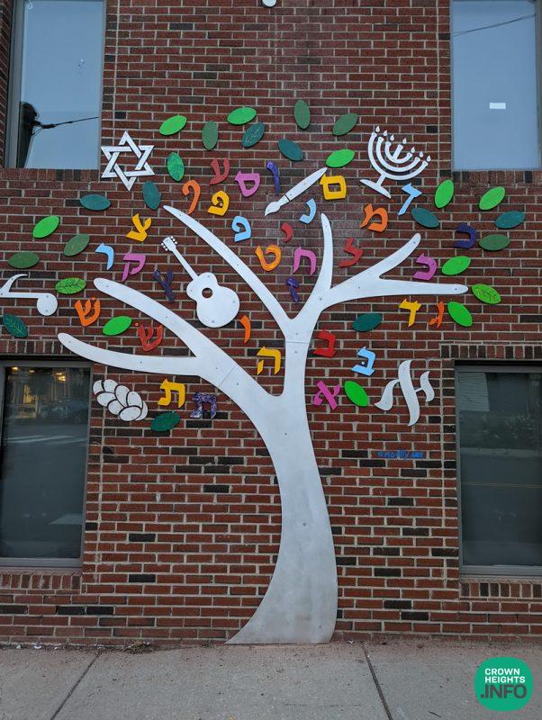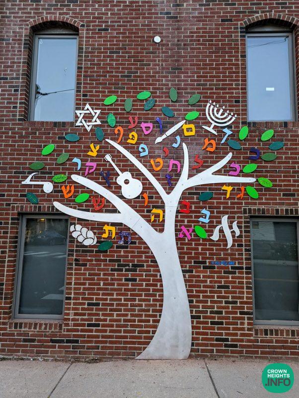 Based on the school’s logo, Moully created a masterpiece using aluminum plates and lots of paint depicting a tree from which blossoms a colorful array of leaves and Hebrew letters. Also included in the mural is a menorah, Star of David, Challah, guitar, music note, and paintbrush.