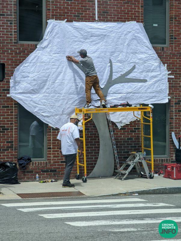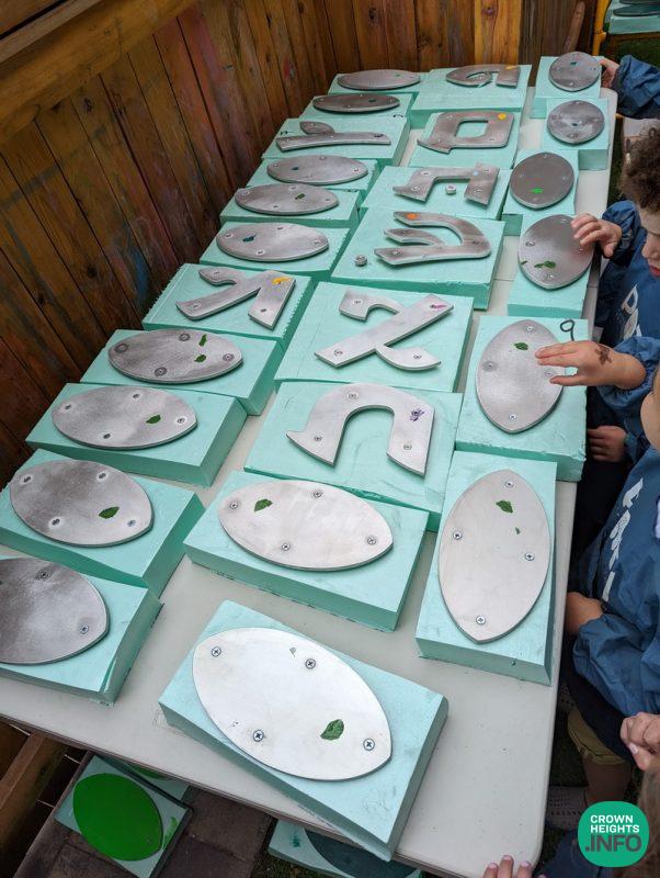 The letters and leaves of the mural were given the finishing touches by the children of the preschool, who painted them in a wide variety of colors, making the mural a collaborative effort filled with meaning and inspiration.