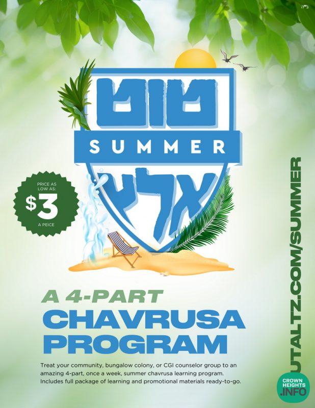 A brand new learning program provides an ideal opportunity to utilize the relaxed summer months in a constructive and inspirational fashion. Designed for Lubavitcher communities, the program can be used for learning initiatives in Shuls, bungalow colonies, and staff in summer camps. The package includes all the resources needed for you to bring the program to your community.