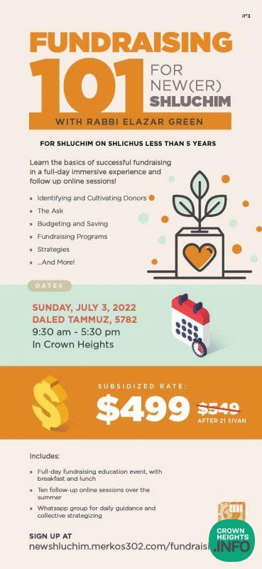 Rabbi Elazar Green will be covering the essentials of fundraising. He will share practical methods on how to approach donors and prepare for the expansion of your Mosad. The course is geared towards Shluchim within the first four years of their Shlichus.