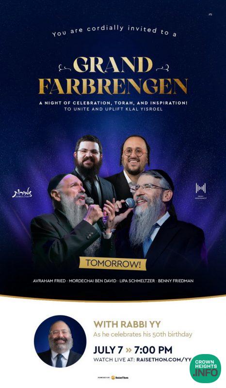 The event will be streamed live on our fundraising page, Raisethon.com/yy, and on CrownHeights.info