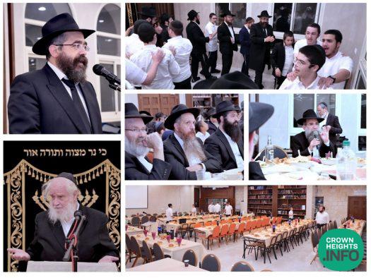 At the end of the official part of the gathering, the students of the Ohel Menachem Mendel Yeshiva joined the Farbrengen with Rabbi Selvin, which lasted hours into the night, which ended with a Niggun.