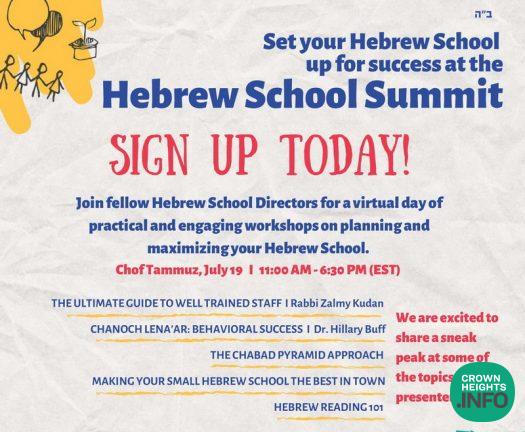 Organized by Doba Richler of CKids International the Hebrew School Summit will be taking place via Zoom on Chof Tammuz July 19 from 11:00 AM until 6:30 PM (EST), and will include a full day of robust workshops.
