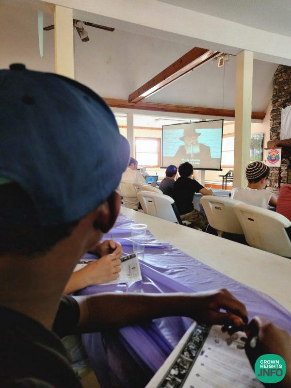 The campers then viewed the ‘Connection Point’ video in which the Rebbe speaks about Tzivos Hashem (video attached).