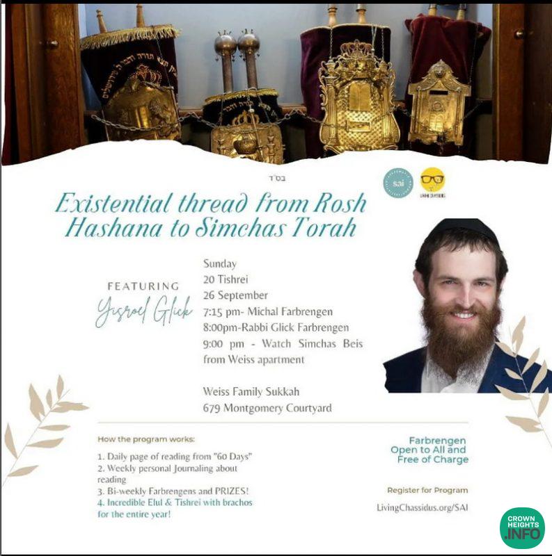 Living Chassidus is an organization in Crown Heights directed by Sharon and Michal Weiss. Over the past ten years, they have built up a warm and inclusive community with a focus on supporting post-seminary women as they take their next steps in life. Living Chassidus features an array of programs that participants can learn and grow from in all aspects of their life. There are daily shiurim, farbrengens and classes to prepare for yom tov. Living Chassidus brings in speakers on health, finances, and child-rearing to empower participants with this important information. Living Chassidus also arranges meals for Shabbos, and assists in Shidduchim and other areas of life. One of Living Chassidus’ most well-known programs is the SAI Tishrei program (formerly known as 60 days).