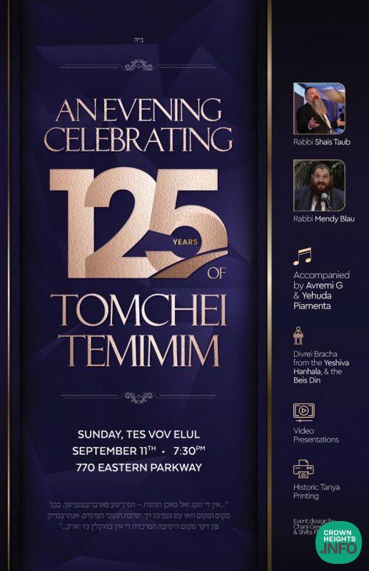 Friends, family, alumni, and supporters of Tomchei Temimim are scheduled to join an upcoming upscale event in celebrating 125 years since the founding of Yeshivas Tomchei Temimim.