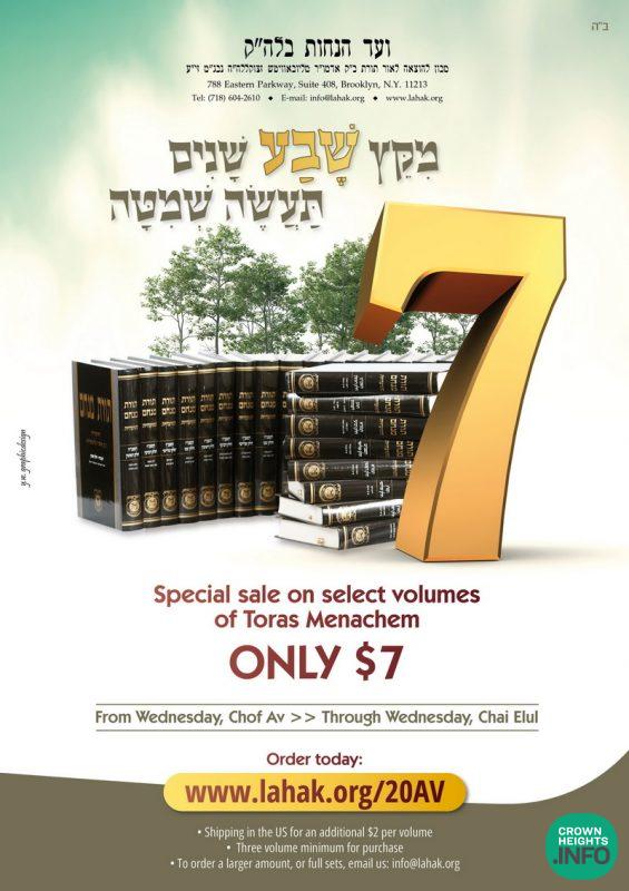 With the close of this Shemitah year, Lahak Hanochos is holding a special sale for a variety of Toras Menachem volumes — spanning all three sets of Toras Menachem.
