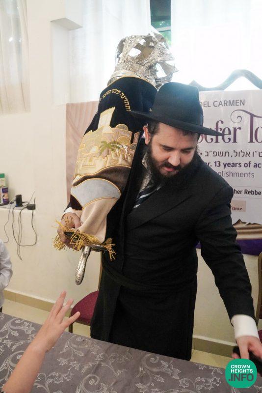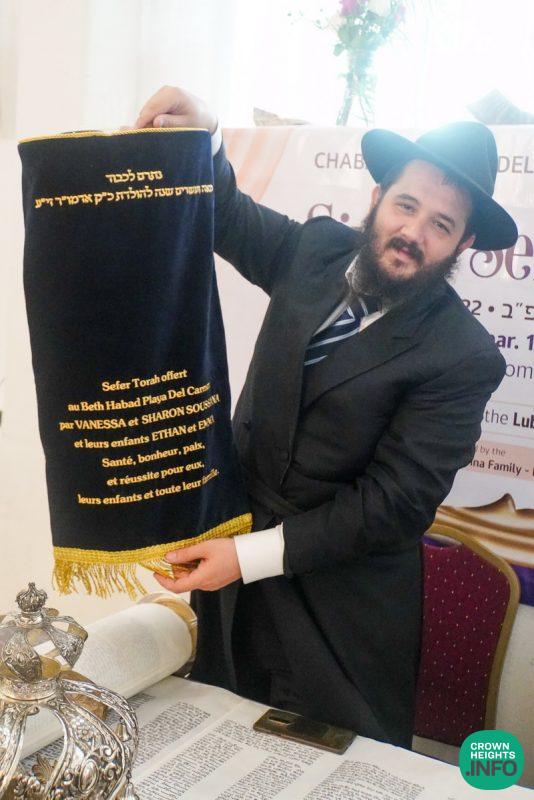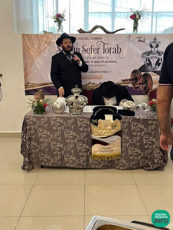 Donated by The Sousana Family from Paris, France, the Sefer Torah will be used by the Chabad house in the resort town of Playa del Carmen led by the Rebbe’s Shliach Rabbi Mendel Goldberg.