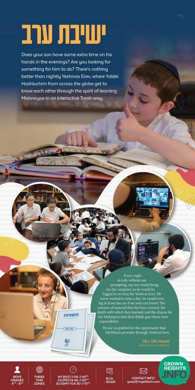 Every night over 200 yaldei hashluchim log onto their accounts to join Yeshivas Erev. For some of the young boys, who spend much of their day in day school explaining basic concepts in Yiddishkeit to their classmates, this is a chance to finally be in the role of a student. For others, it fills in gaps in Limudei Kodesh, and for some, it serves as a time to learn with new friends.