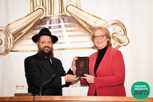 And the rabbi, in the presence of Bundestag President Bärbel Bas, Federal Minister Christine Lambrecht, Israeli Ambassador Ron Prosor and the President of the Berlin House of Representatives, Dennis Buchner, announced the surprising news that the Chabad Berlin community will soon begin construction of a new synagogue.