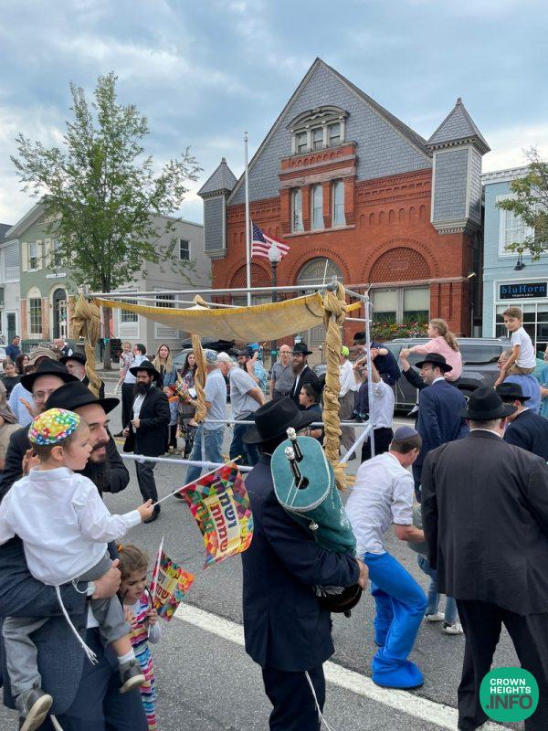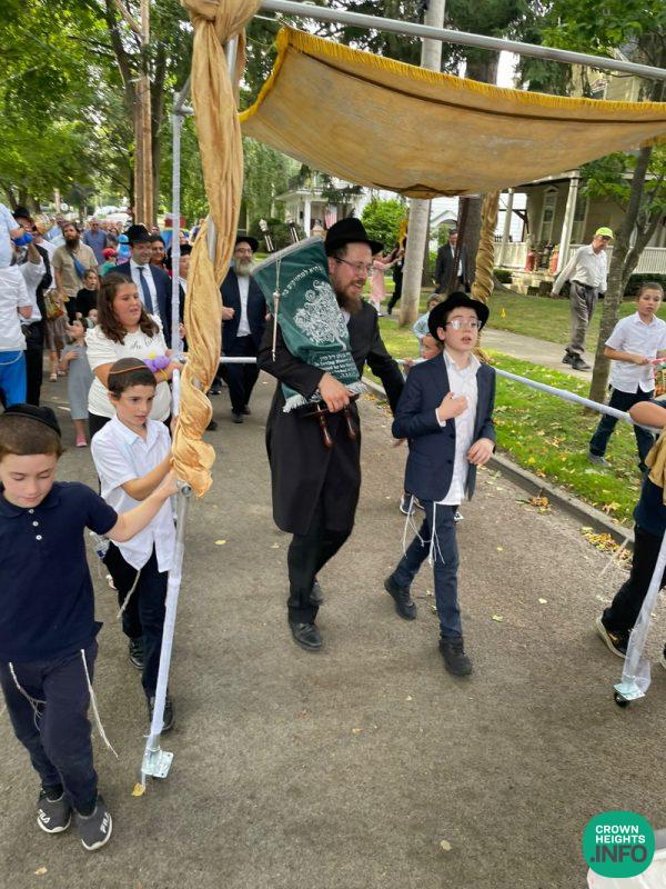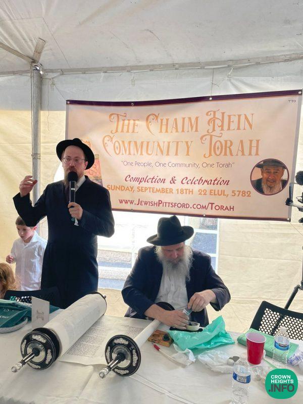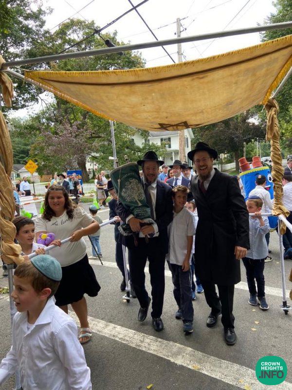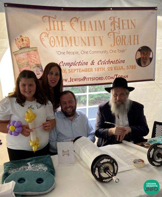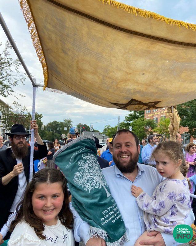 This past Sunday, The Hein Family and Chabad of Pittsford, NY, celebrated the completion and dedication of a new Torah scroll written in memory of their father R’ Chaim Yehuda Hein, A”H. Local community members, dignitaries, and friends and family from afar, enjoyed the festivities, culminating with a historic grand parade through Pittsford Village to Chabad of Pittsford, where Hakafos took place.