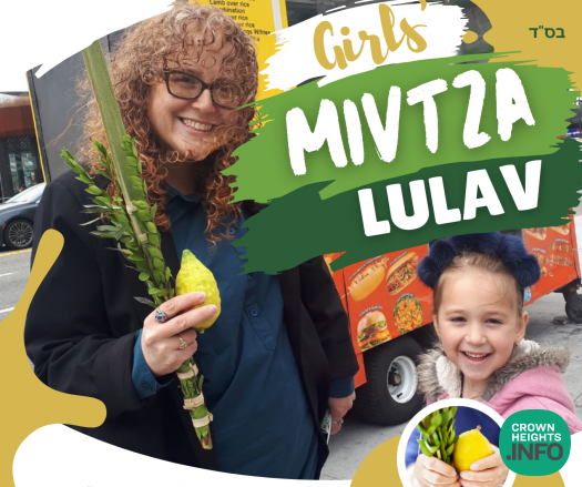 This year, as in the past, we are opening the Mivtza Lulav Center for women and girls, where they can come pick up pre-made Mivtzoim Lulav Sets, to borrow and take with them on mivtzoim.