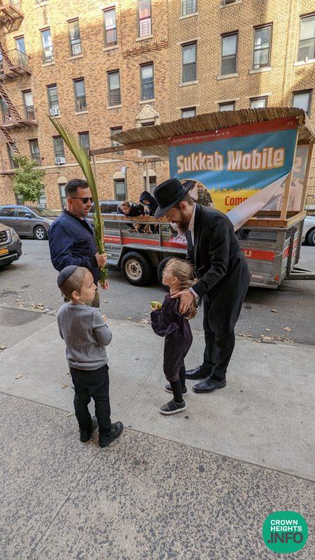 The first day of Chol Hamoed started out with a childrens Mivtza Lulav accompanied by a Sukka Mobile adding joy and light to the streets of Brighton Beach.
