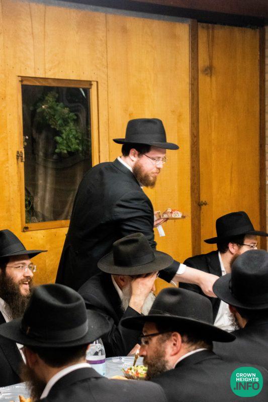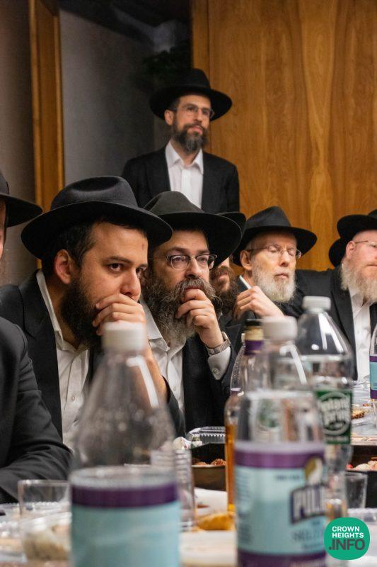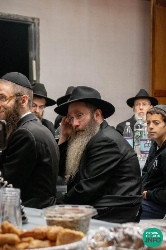 The Mechanchim gathered round the festive set tables, enjoying the extra bountiful delicacies ordered in honor of Hakhel. This year’s event had a beautiful turnout, with the uniqueness of many new faces–numerous celebrated Mechanchim. They had come to Crown Heights for Tishrei, of this Hakhel year. Indeed a palpable Hakhel spirit of joyful togetherness resonated with the large crowd, spanning Menahalim and Teachers from far and near.