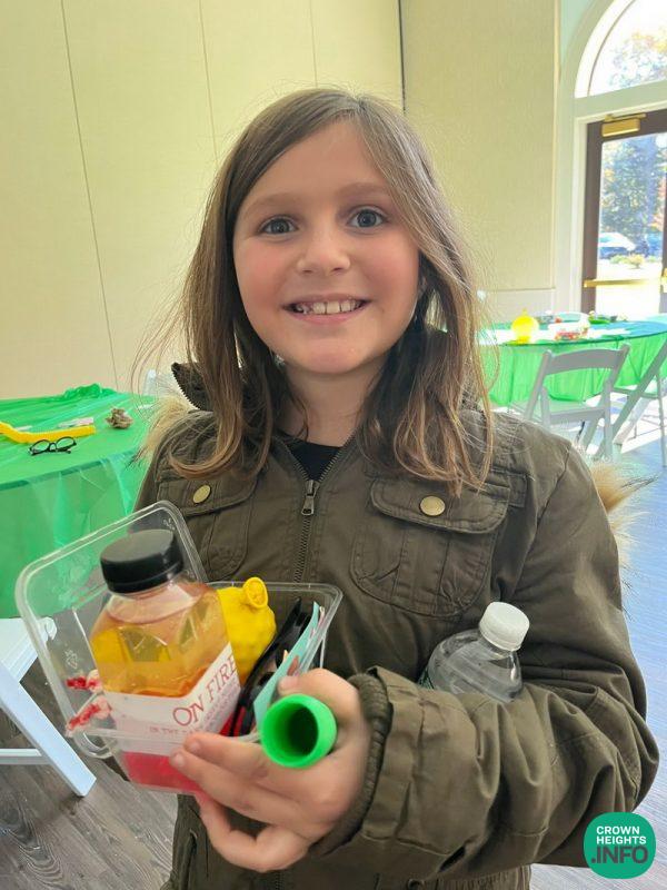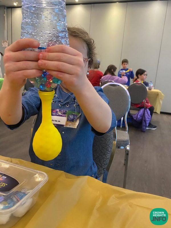 The program began with a 3D video of the story of Sukkos, depicting the Jews wandering through the Desert, followed by a journey through time, seeing Jews of all historical periods and locales build their Sukkahs. Afterward, the kids created their own lava lamps, designed balloon masterpieces, and made fun treats to eat in Sukkah.
