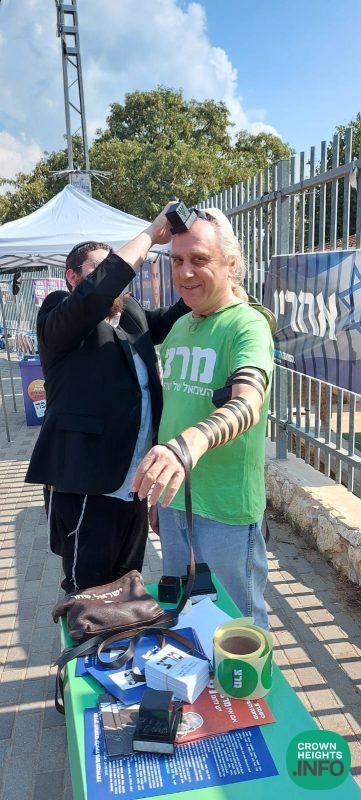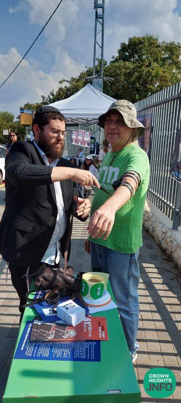 When a green shirted Meretz activist decided to defile Tefillin at a Chabad Tefillin booth in Eretz Yisroel, his companions decided to fight back, by putting on Tefillin themselves.