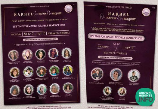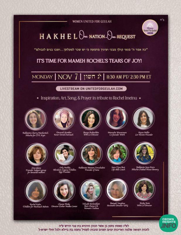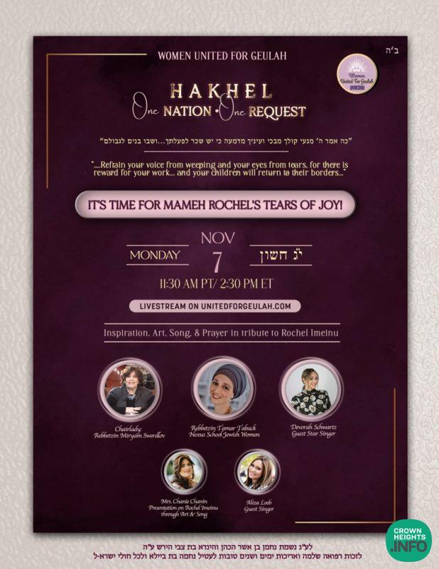 The Women United for Geulah committee has proudly announced a Global Hakhel Geulah Event As Tribute To Rochel Imeinu for all Jewish women worldwide.