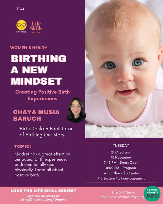 “Birthing a New Mindset: Creating Positive Birth Experiences” with Mrs. Chaya Musia Baruch.
