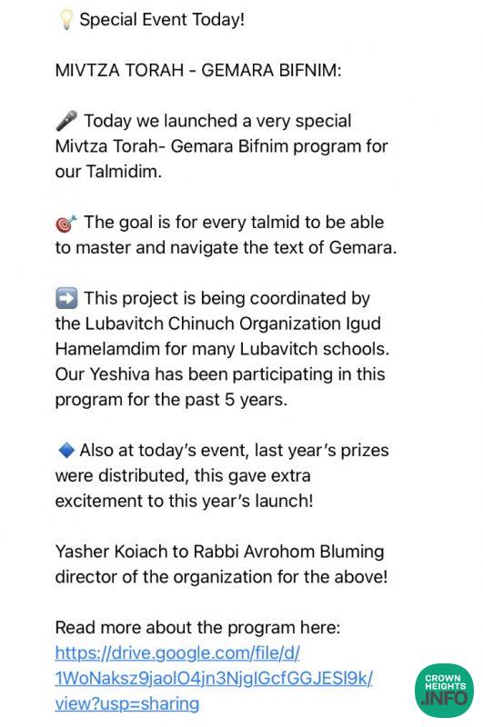 Gemara Bifnim, a program founded by Lubavitch Chinuch Organization Igud Hamelamdim, strongly motivates and rewards students for mastery of the text, a skill critical to their success through school and yeshiva, is entering its sixth year and has more participants than ever before.