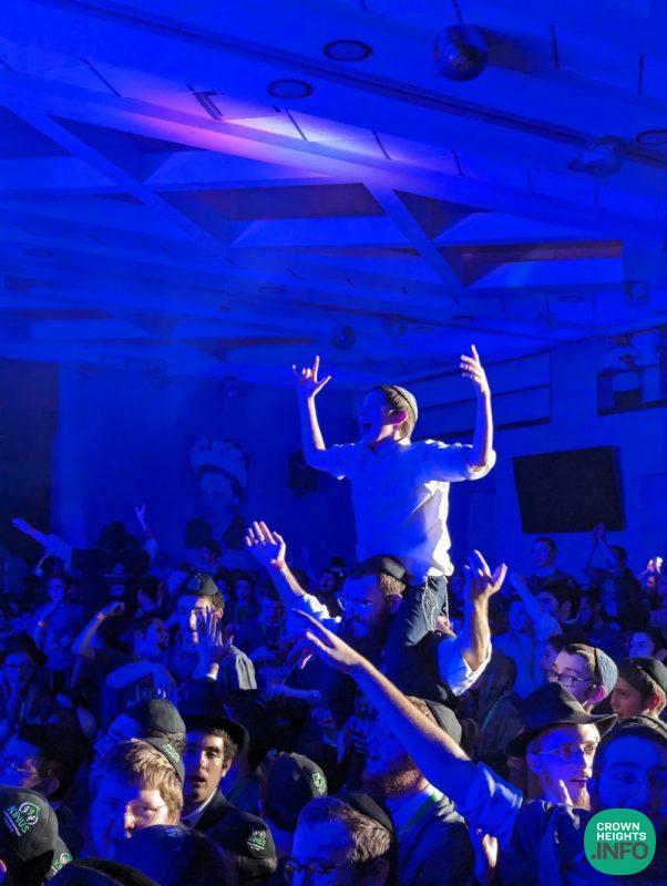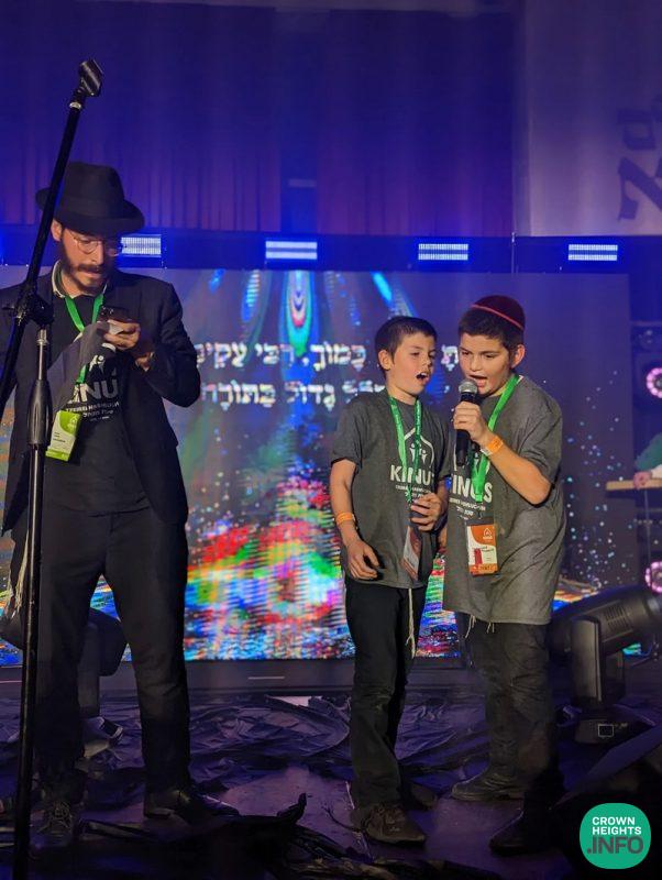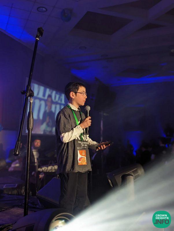 The crowd was captivated by a special video presentation featuring Young Shliach Nosson Schlanger from Sydney, Australia, highlighting an amazing campaign where he put up 120 Mezuzos in his city in honor of Yud Alef Nissan. Nosson then came onto the stage and shared how amazing his first Kinus experience was and inspiration for his fellow Young Shluchim to do a project similar to his. Singing of the Kinus theme songs then rocked the ballroom, followed by the boys being mesmerized by a master ventriloquist.