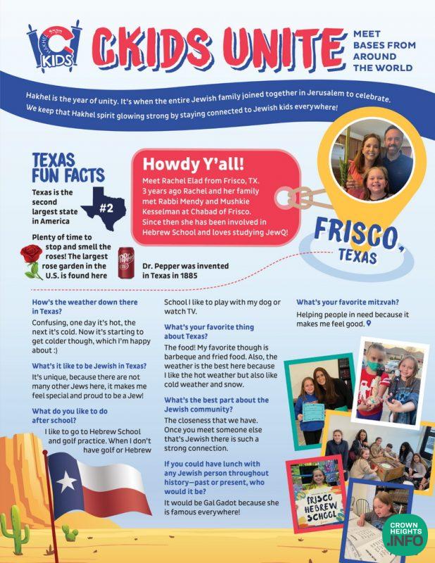 The 24-page magazine, developed by Mrs. Risa Bursk, includes its fair share of fun with features such as a “Mitzvah Mystery” page, I Spy, and crazy menorahs from around the world. Special for this year— the “CKids Unite” page lets readers meet fellow Jewish kids from around the world in honor of Hakhel.