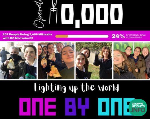 One of those creative Mitzvah campaigns is taking place at the Bais Chomesh High School in Toronto, “When I saw the site, I thought it was such a great idea and perfect for what we needed,” shares Chaya Mishulovin, head of Mivtzoim at the school. “We started a Mivtzoim campaign with the goal of 10,000 Shabbos candles given out this year.” Motivating girls to go out and do Mivtzoim can be challenging, but “the girls are so excited! We’ve never had something like this before, where they can track it on a website. On OneMitzvah, we were able to personalize our campaign and create teams. Each girl has her own page with a personal goal of 100 neshek. They think it’s so cool!”