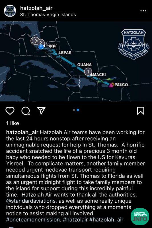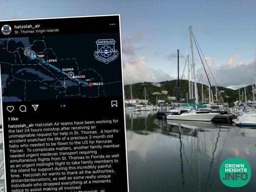 Late on Tuesday the Shluchim to the Virgin Islands and some of their younger children were near the ocean, when their 4-month old baby slipped into the water -followed immediately by her parents, who tried desperately to save their baby but the mother got stuck underwater.