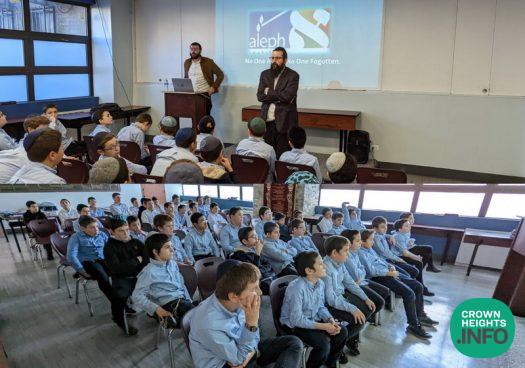 Students of the older division at Tomchei Tmimim Ocean Parkway enjoyed an interactive presentation by Aleph Institute Communications Director Rabbi Rafi Chemel, learning about the tremendous work the institute does for Jewish inmates all over the world.