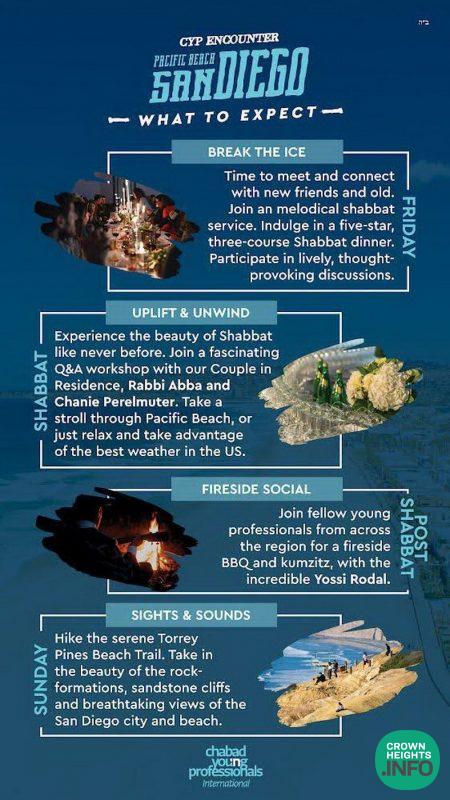 Of course, the signature five-star luxury of any CYP experience is in the works for this weekend as well. Set on the stunning beaches of the Southern Californian coast and with all the amenities of an upscale resort, the body will be well taken care of. The rest is up to the soul—with opportunities available in bucket loads. With farbrengens, lectures, davening, and as many heart-to-hearts that a couple hundred hearts can handle, the stage is set for an experience of both body and soul.