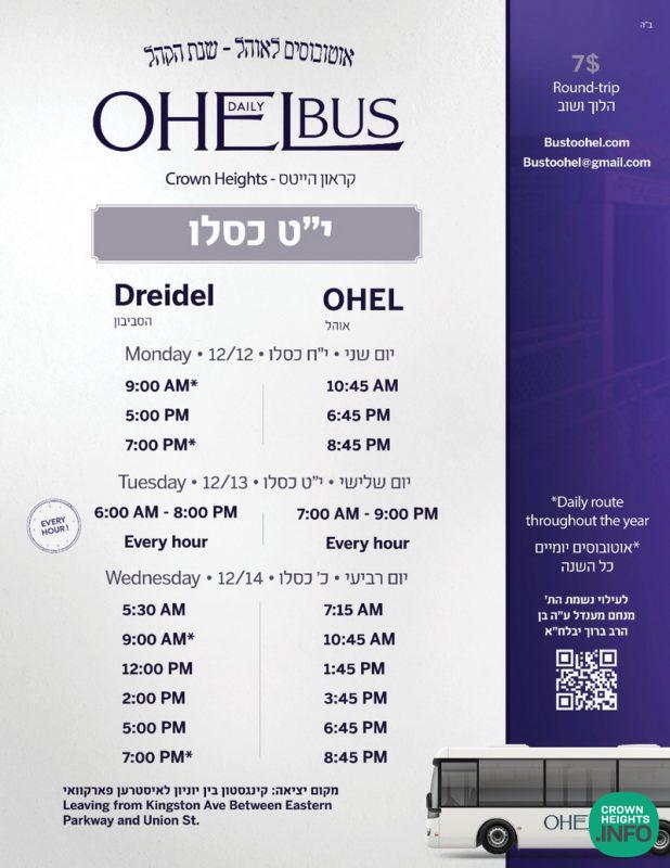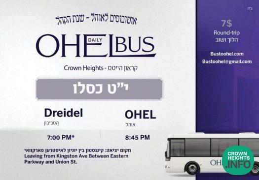 In honor of the Yud Tes Kislev, the Rosh Hashana of Chassidus, the Ohel Bus Service will be providing extra subsidized transportation round trip from Crown Heights to the Ohel beginning on Monday, Dec. 12th through Wednesday, Dec. 14th.