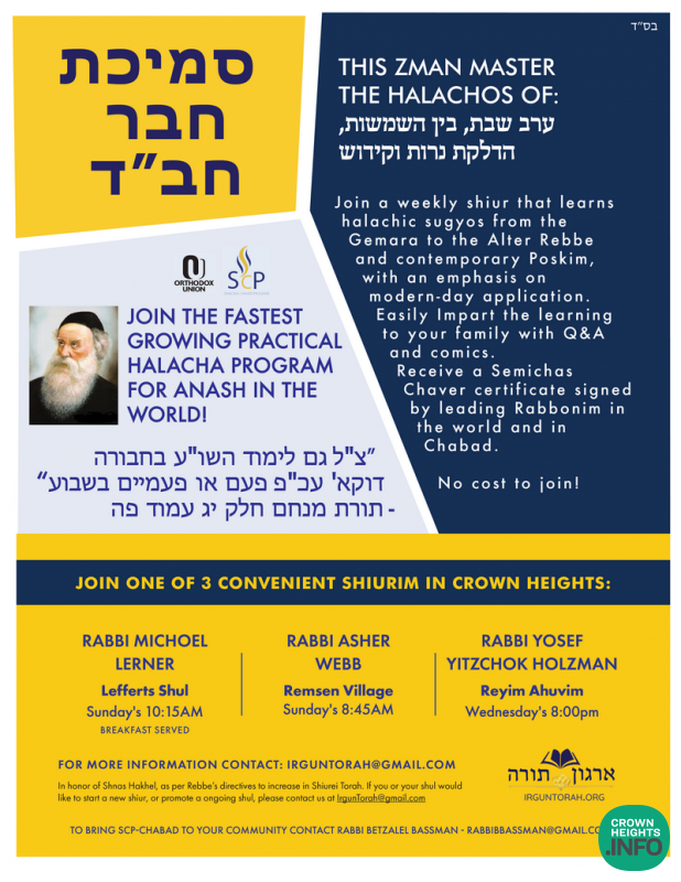 In honor of Shnas Hakhel, as per Rebbe’s directives to increase in Shiurei Torah, If you or your shul would like to start a new shiur, or promote a ongoing shul, please contact us at IrgunTorah@gmail.com.
