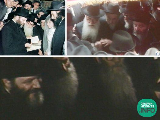 The first clip shows the Rebbe at a wedding in 5709. This wedding was at Gold Manor Hall in Brooklyn, before the Rebbe initiated a policy that he would only attend a Chuppah held at 770.