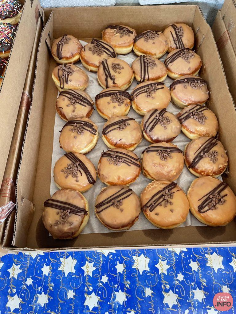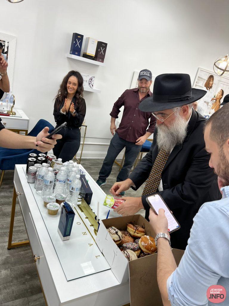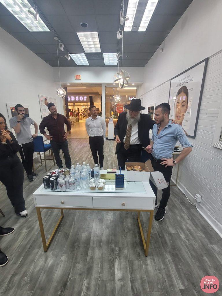 The Second event was at the Edison Mall where the local store owner’s, employees, and costumers were treated with Delicious Doughnuts, Hot Latkes, Drinks and the Lighting of the Menorah by Eli the store owner. Rabbi Yitzchok Minkowicz spoke about the spiritual meaning of Chanukah with everyone participated in lively Singing and Dancing.