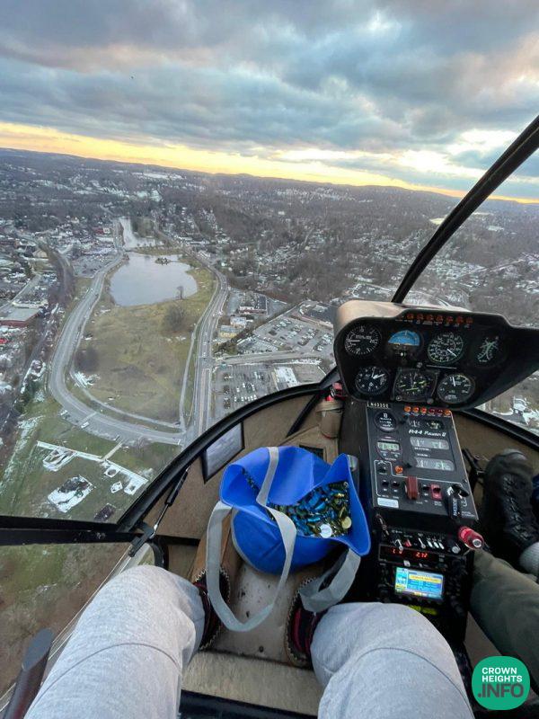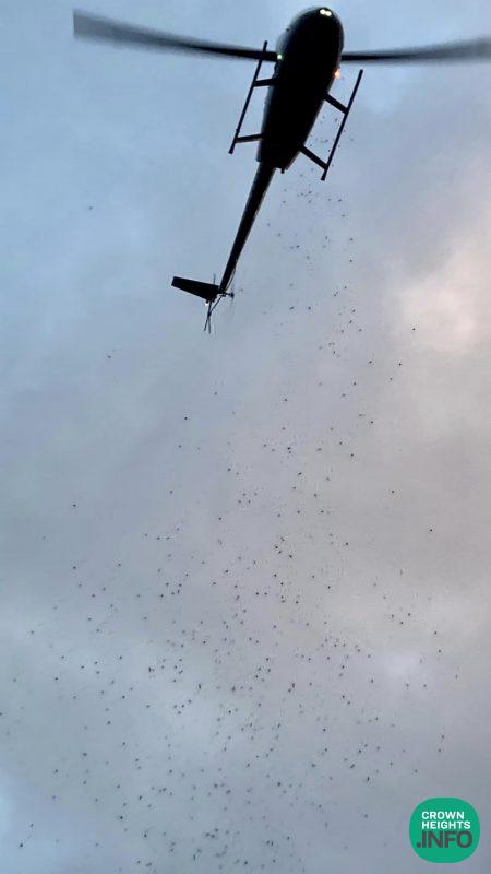The weather forecast in Monroe on the 1st night of Chanukah called for a storm of 5000 Chocolate Gelt and Chanukah Candy raining down from a helicopter! The sweet storm was caused by CTeens Amir Mosker and Tom Einav.