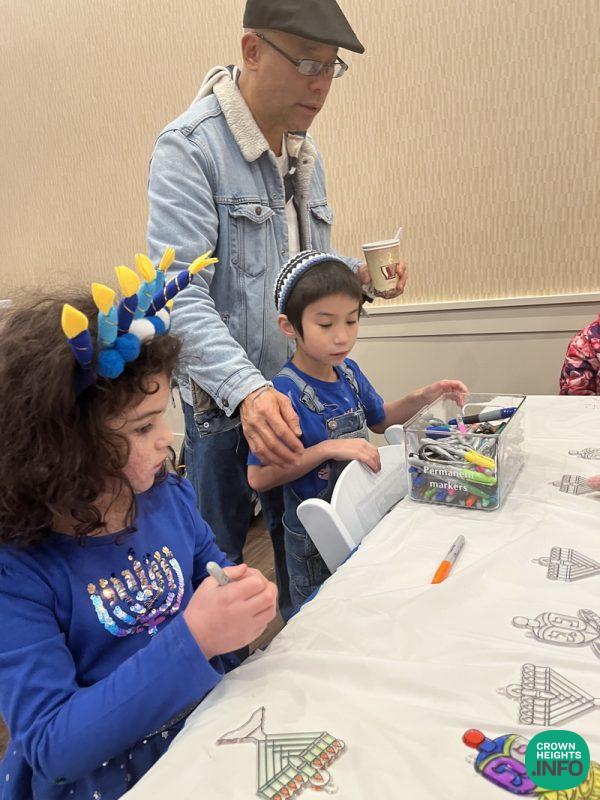 The storm was quickly cleared up by participants who packed their Chanukah goodie bags to their heart’s content. The crowd then participated in a festive special-effects menorah lighting of sparklers and lasers.