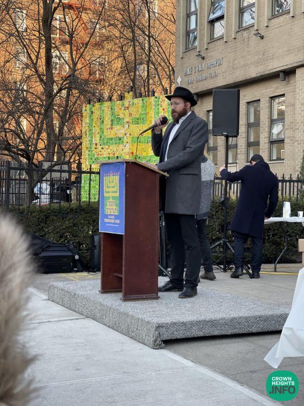 Then, the giant menorah was lit. The sight of hundreds of attendees looking on as the menorah was kindled created a truly unique atmosphere of achdus.