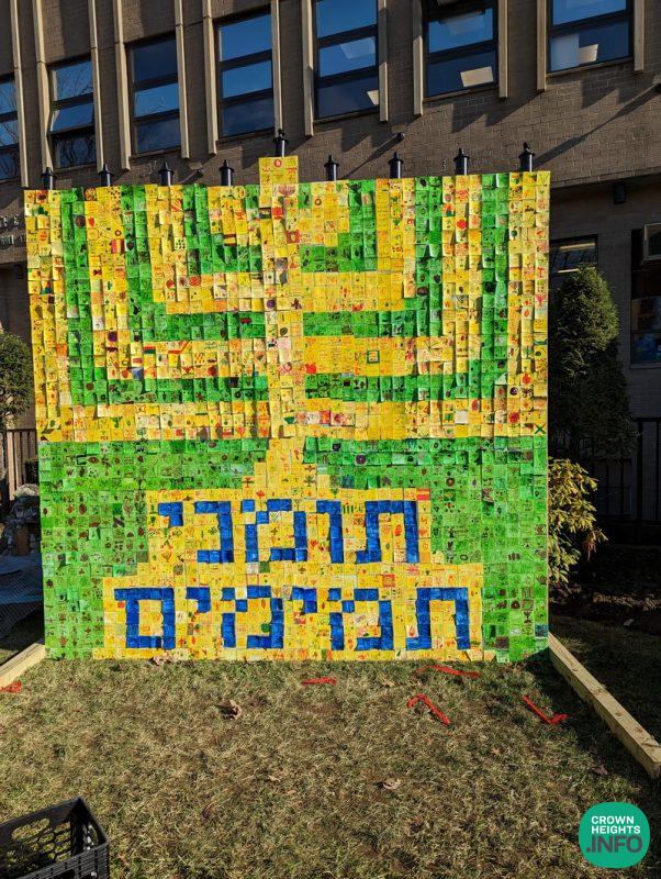 For three weeks leading up to Chanukah, the students of Tomchei Tmimim Ocean Parkway, along with their families, eagerly anticipated the grand reveal of their special project: a Hakhel Menorah. Every talmid was involved in the creation of this masterpiece, putting in hard work and dedication to bring it to life. The many individual squares came together to create one shining, beautiful menorah.