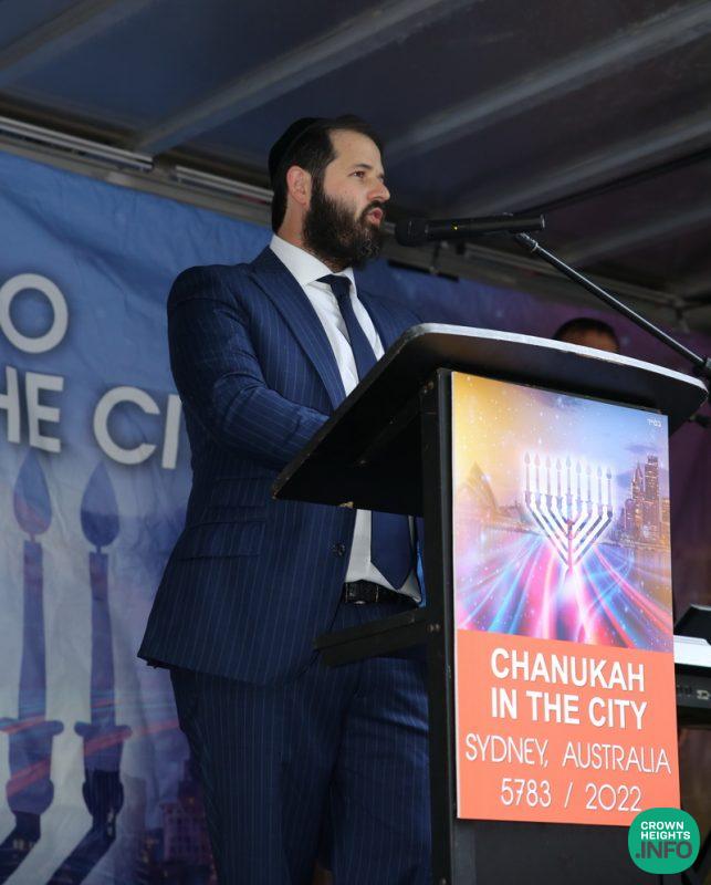 Despite the unpredictable blustery weather, following a beautiful car menorah parade that snaked its way from Vaucluse to the Opera House via various iconic landmarks, the event was well attended by a wide range of Sydney Jewish Community members as well as various representatives of local and federal government.